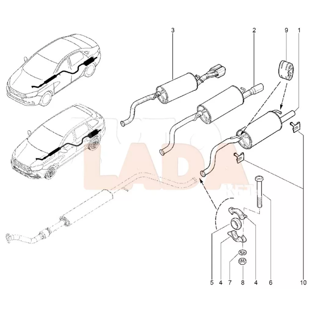 A kipufogón található felfogatásokat ellenőrizze, hogy azonos irányban álljanak, mint az ábrán látható 3 közül a középső kipufogó. Összesen 4 fajta kipufogóval szerelték a vestákat.